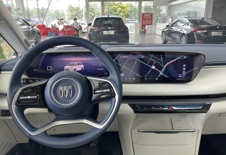 中控臺造型也有明顯升級,臺面上基本都有軟性材質的包裹,空調出風口做了隱藏式處理,30英寸的長屏顯得很有科技感,展車采用淺色內飾,看起來比較溫馨居家。