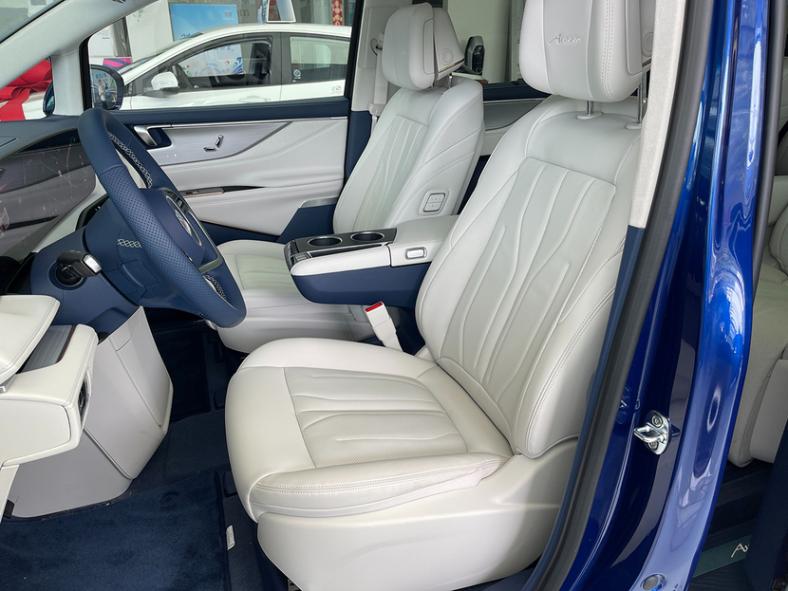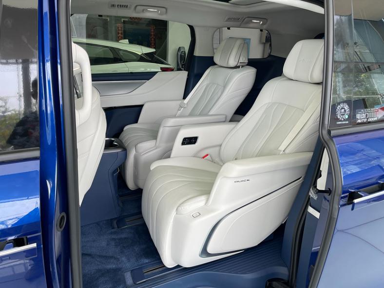 座椅全系為真皮材質,比較厚實。前排座椅標配電動調節、加熱、通風和主駕腰部支撐,頂配多出了駕駛位座椅記憶和老板鍵。值得一提的是,別克GL8陸尊PHEV依然保留了前排中間的走廊,可以方便的從主駕挪到副駕。