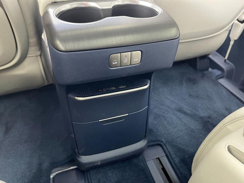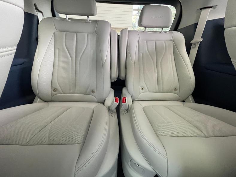 展車為高配六座版,所以第三排也是兩個獨立座椅,有電動調節、加熱和通風的功能,并支持前后調節。如果是七座版,則沒有加熱和通風。