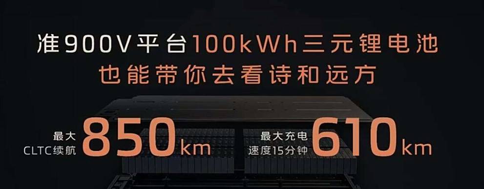動力方面,新車將會提供單電機以及雙電機版本,其中單電機版本最大功率為216kW,雙電機版最大功率579kW,0-100km/h加速時間2.74s。新車搭載磷酸鐵鋰或三元鋰電池,有650/710/780/850km多種續航可選。同時,新車還將會率先搭載固態電池,容量為133kWh,CLTC純電續航里程將突破1000km。