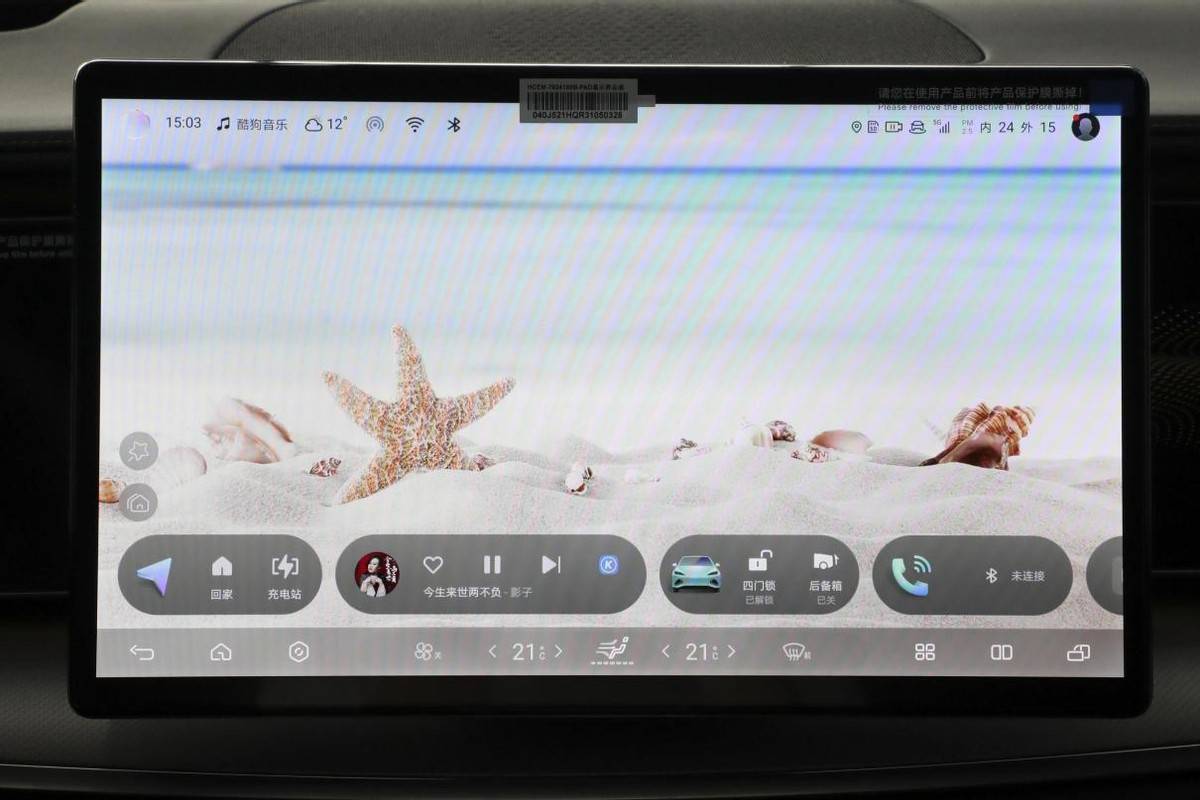 內飾方面,海獅07的中控無論是設計,還是裝飾其實都不算特別創新,它的四輻式方向盤、圓角矩形換擋機構與對應輔助系統控制臺,還有傾斜布局的無線充電板等等,都是我們所看到過的。但客觀來說,無論是嵌入到烤漆飾板中的10.25英寸數字儀表,還是可旋轉的15.6英寸觸控屏,亦或是大面積覆蓋在常觸區域中的絎縫軟包等等,科技感與檔次性都能從中體現出來,而且新車的細節似乎比過去的海洋網車型更細膩了,不知道這是不是e平臺3.0 Evo給車輛帶來的工藝變化。