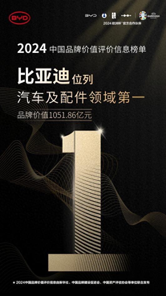 5月11日,“2024中國(guó)品牌價(jià)值評(píng)價(jià)信息”在浙江德清盛大揭曉,由新華社、中國(guó)品牌建設(shè)促進(jìn)會(huì)等權(quán)威機(jī)構(gòu)聯(lián)合發(fā)布。在眾多汽車及配件品牌中,比亞迪以驚人的1051.86億元的品牌價(jià)值榮登榜首,比亞迪再次遞出閃亮名片。