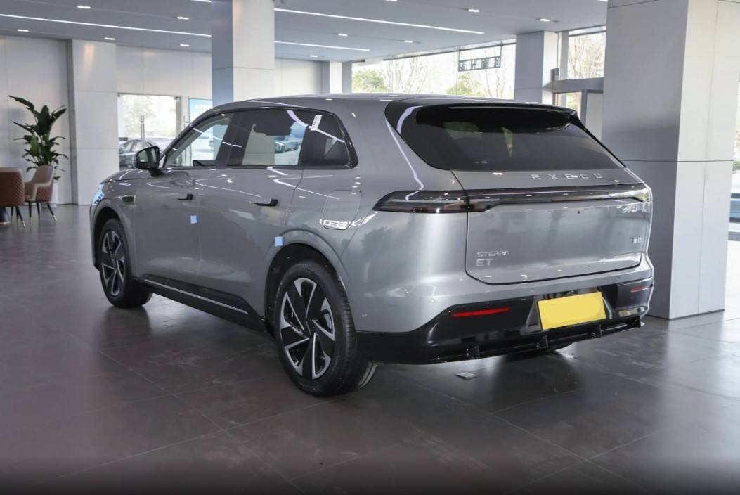 星紀元ET的尾窗與尾柱帶有清晰的前傾結構,邊緣黑色的凸出飾邊也形成環繞式設計,有助于整車空氣學性能的表現。貫穿式尾燈組為尾部亮點,熏黑的腔體涂裝賦予了尾燈的深邃質感,內部燈帶則為分層布局。尾燈上方鑲嵌有EXEED字母LOGO,尾門下方的內凹筋線設計與外擴粗壯的后包圍組件相結合,同時底部帶有黑色護板,并配有擴散器飾件。
