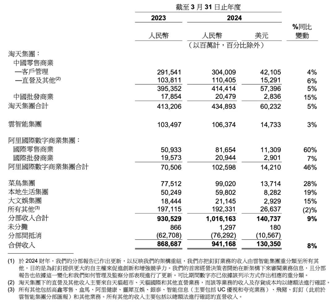 2024 年 5 月 14 日,阿里巴巴發布《2024 年三月底止及 2024 財年年度業績公告》。