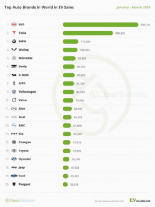 近日剛好看到了今年一季度以及去年全球新能源車銷量排行榜,真的也是印證了這個現(xiàn)象。去年以及今年一季度,全球最暢銷的新能源汽車品牌都被我們國產(chǎn)品牌比亞迪所拿下。而今年一季度全球最暢銷的新能汽車品牌排行榜中,國產(chǎn)品牌占據(jù)了5席,成為絕對主力。