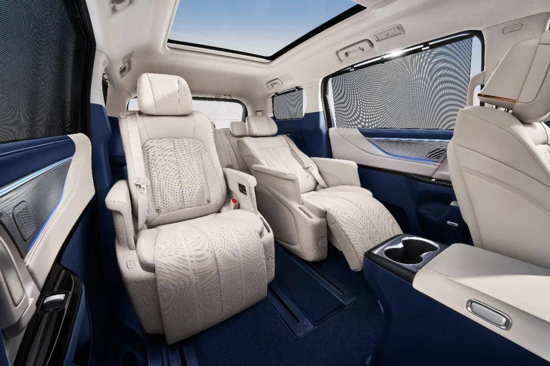 這些都是看不見的地方。看得見的就更多了。包括Nappa真皮、六向航空頭枕、四向腰托、電動腿托、八點按摩、快速加熱通風等等。并且,很多強大的功能不僅限于第二排,六座版的第三排也擁有通風和加熱。