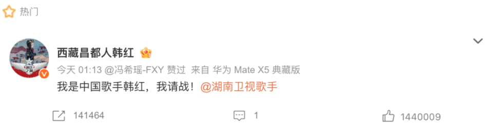 面對觀眾的“大點兵”,有不少歌手自告奮勇站出來。韓紅5月12日發文“請戰”后,黃麗玲、王晰、紀敏佳、曾一鳴、江映蓉、李佳薇等都報名參賽。不過也有一些歌手被質疑是蹭熱度,“缺的是爭前三的,不缺爭第七的”。