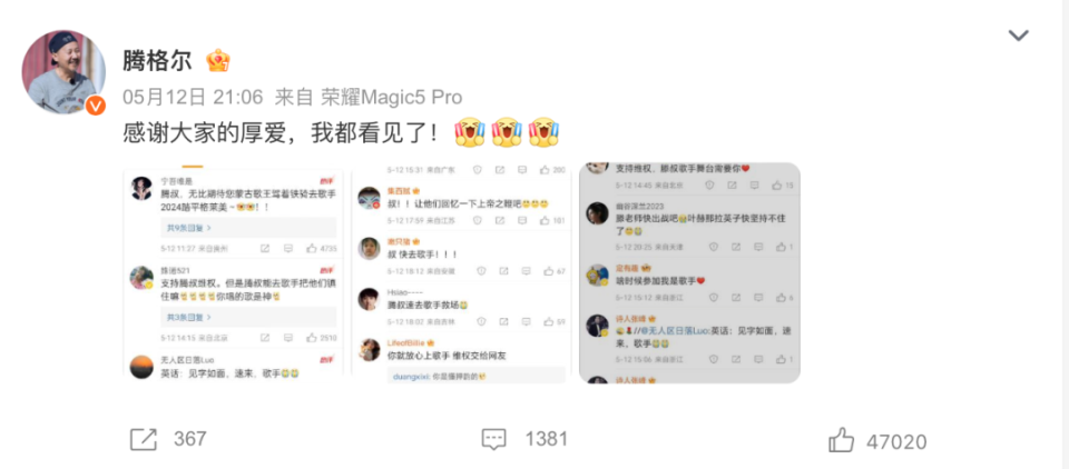 騰格爾感謝網友喊他上《歌手2024》,他已64歲