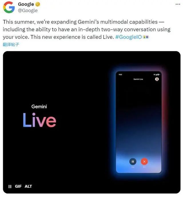 谷歌稱,今年夏季將擴展 Gemini 的多模態(tài)功能,包括增加用語音進(jìn)行深入雙向?qū)υ挼哪芰Γ摴δ鼙环Q為 Live。通過 Gemini Live,用戶可以與 Gemini 交談,并可以從各種自然的聲音中選擇它回應(yīng)的聲音。用戶甚至可以按照自己的節(jié)奏說話,或者在回答過程中打斷并澄清問題,就像在任何人類對話中一樣。