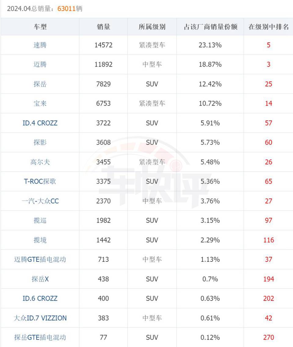 寶來已經(jīng)連續(xù)三個(gè)月單月銷量跌至萬輛以下,探岳4月銷量環(huán)比降幅更是高達(dá)46.7%。
