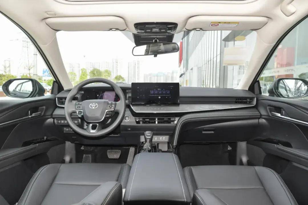 全新凱美瑞整體仍然是日系燃油車的風格,懸浮式中控屏尺寸偏小,沒有副駕娛樂屏,但也配置了8155芯片作為座艙基底,用的是華為生態AI語音助手和華為HiCar,所以在智能體驗這一塊也有所提升。