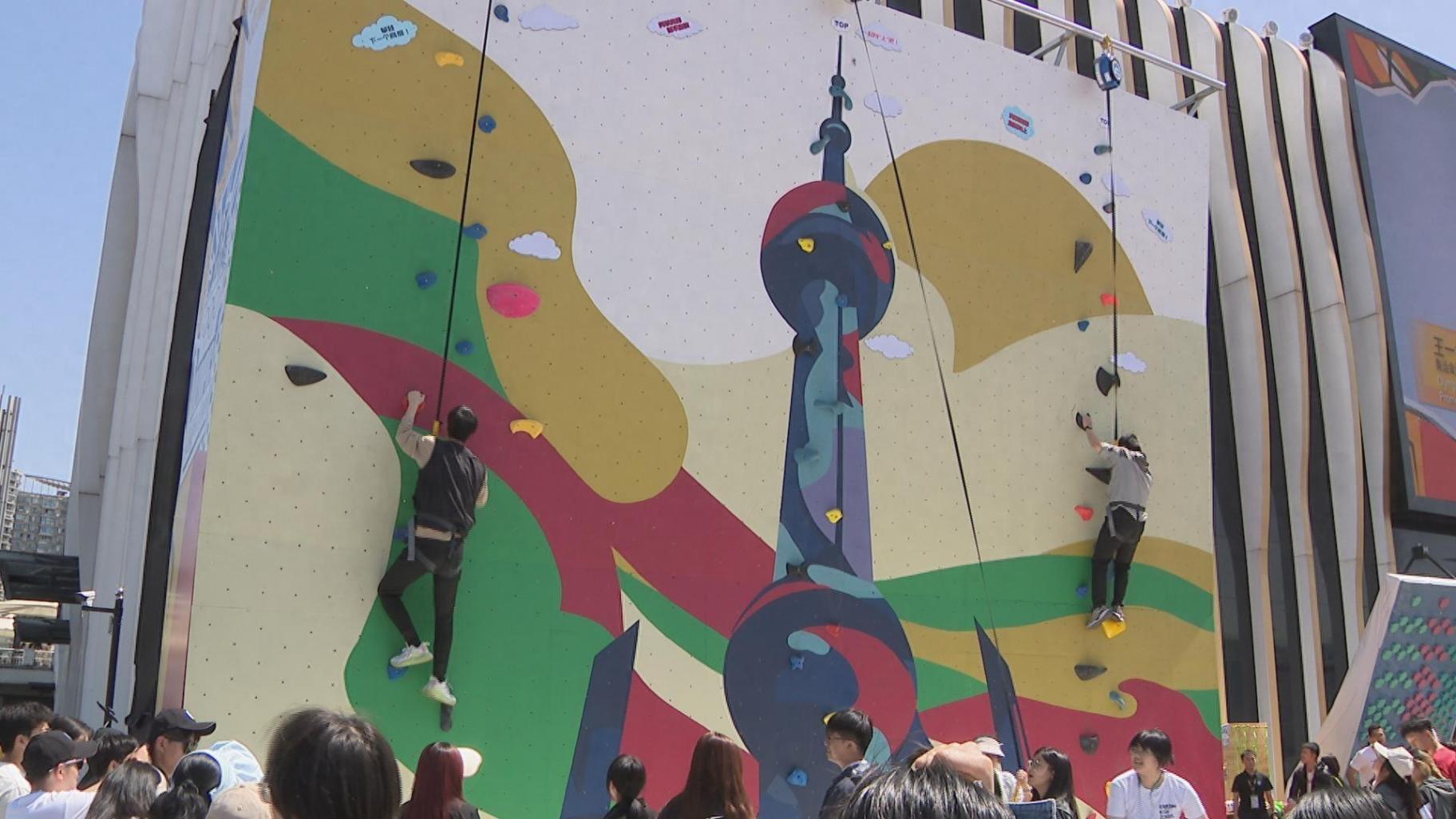 “今天排隊的人非常多,志愿者會幫我們穿戴好,然后一個個有序地排隊入場體驗攀巖項目。我是第一次體驗,我覺得比我想象中要容易上手一些,但也是需要技巧和力量來支撐。我不僅了解了攀巖的文化、感受到了攀巖的魅力,更體會到了我們中國攀巖運動員的拼搏精神。”一位體驗者告訴記者。