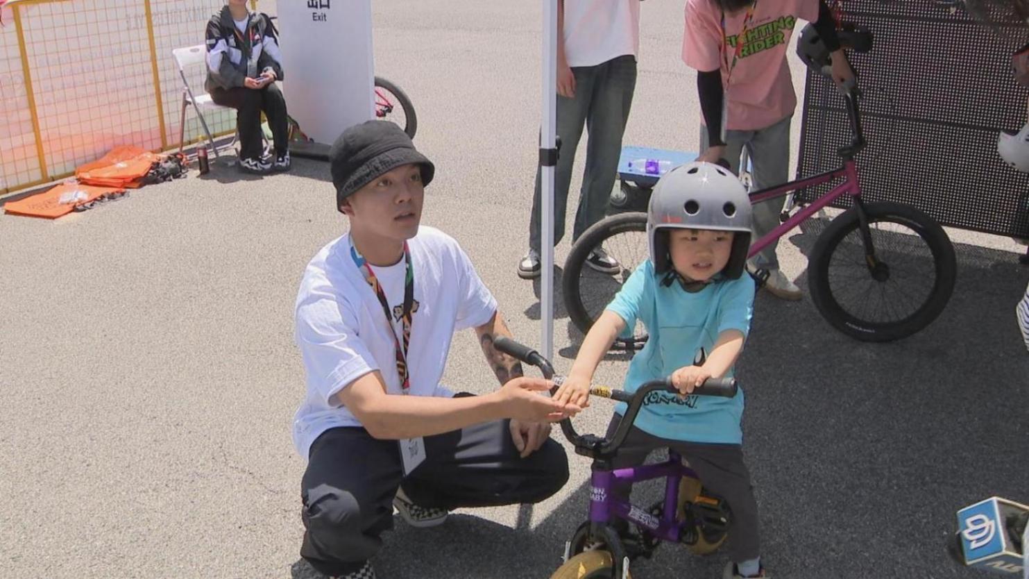 在小輪車的展玩區,體驗的市民中最小的只有兩三歲,戴上頭盔,在工作人員的指導下,依舊可以體驗到小輪車運動的魅力。小輪車的門檻并不算高,會騎自行車的人都可以嘗試,不過要用小輪車做出一些騰躍、抬升的動作,那還是得經過專業練習了。
