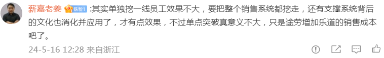 挖來的銷售個人能力是有的,怎么把他們融入一個新的銷售體系,怎么讓他們在新的體系中發揮出最大能量也是一個挑戰。