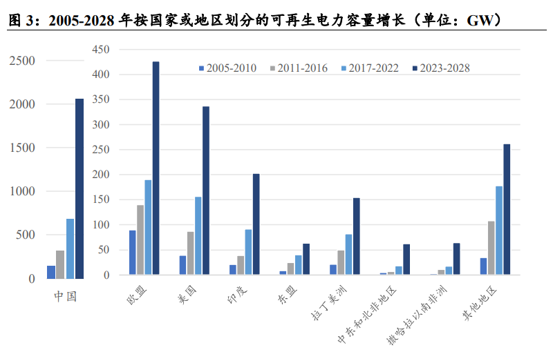 根據IEA披露的數據,2023 年全球可再生電力裝機容量新增預計達到 507GW,同比增長近 50%,預計到 2028 年將達到 730GW。
