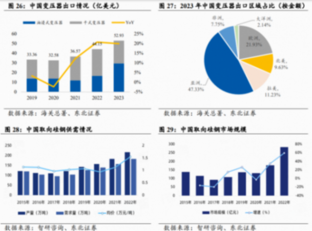 尤其是,具備供應鏈優勢和成本優勢的國內廠商在海外市場具備充足競爭力。東北證券預計,受益于海外的供需失衡,我國變壓器出口規模有望進一步增長。