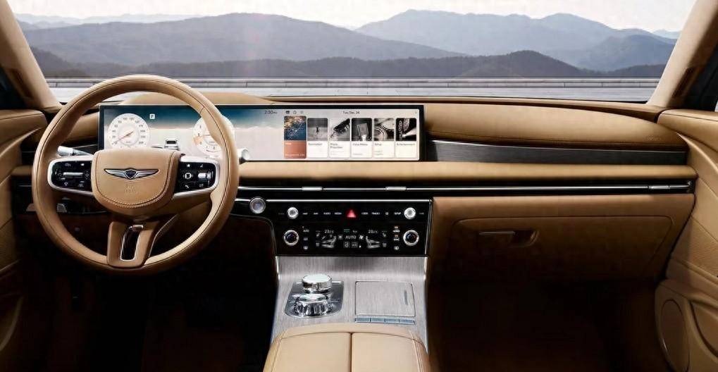 內飾方面,27英寸的OLED大連屏看起來非常霸氣和過癮。此外車輛還增加了指紋識別系統。車輛的用料講究,多采用軟性材質,質感極佳。