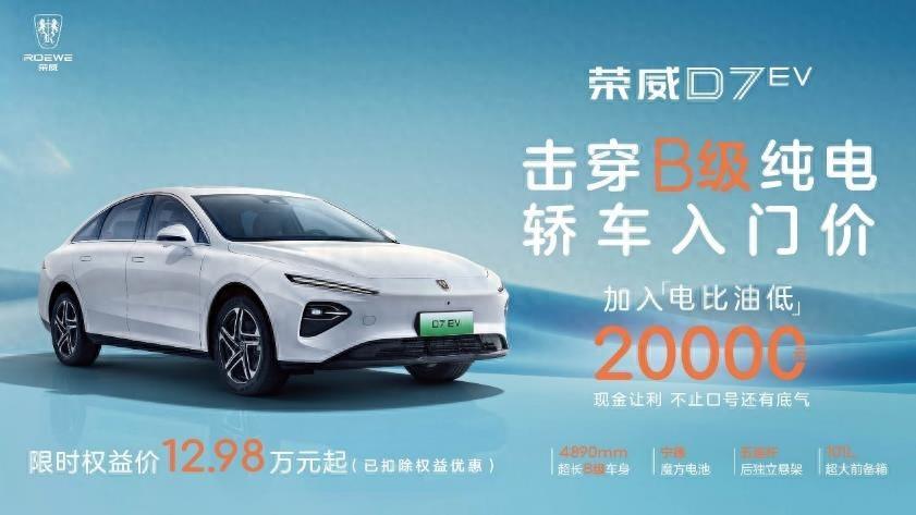 此次優惠活動由“后驅純電云感座駕”榮威D7 EV領銜,限時直降2萬元,以12.98萬起的驚喜價擊穿B級純電轎車入門價,成為12萬級唯一B級純電轎車。