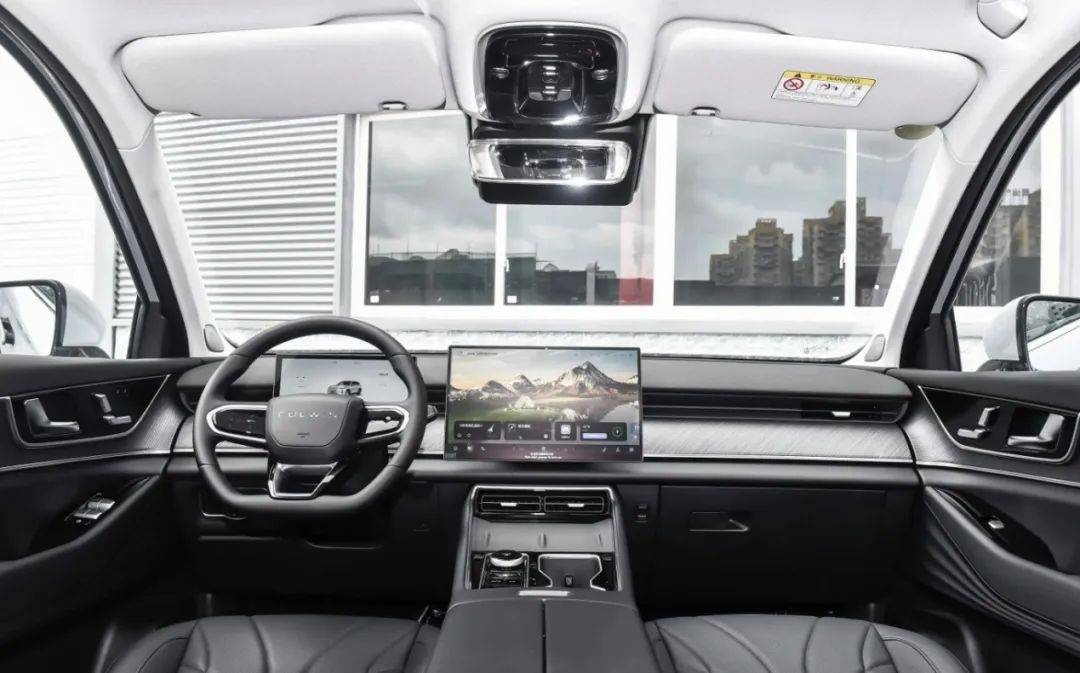 內飾方面,整個座艙采用著較為簡潔的云端環抱座艙設計,并配備有10英寸全液晶儀表和15.6英寸2.5k高清大屏,內置有高通驍龍8155芯片及5G千兆以太網。其他配置方面配備有全景天窗、7安全氣囊(標配遠端氣囊)、540度全景影像、256色氛圍燈、50W手機無線快充、高清HUD抬頭顯示系統以及L2+級輔助駕駛功能,Sony14揚環繞音響(帶頭枕音響)+ENC主動降噪等配置都出現在車上。