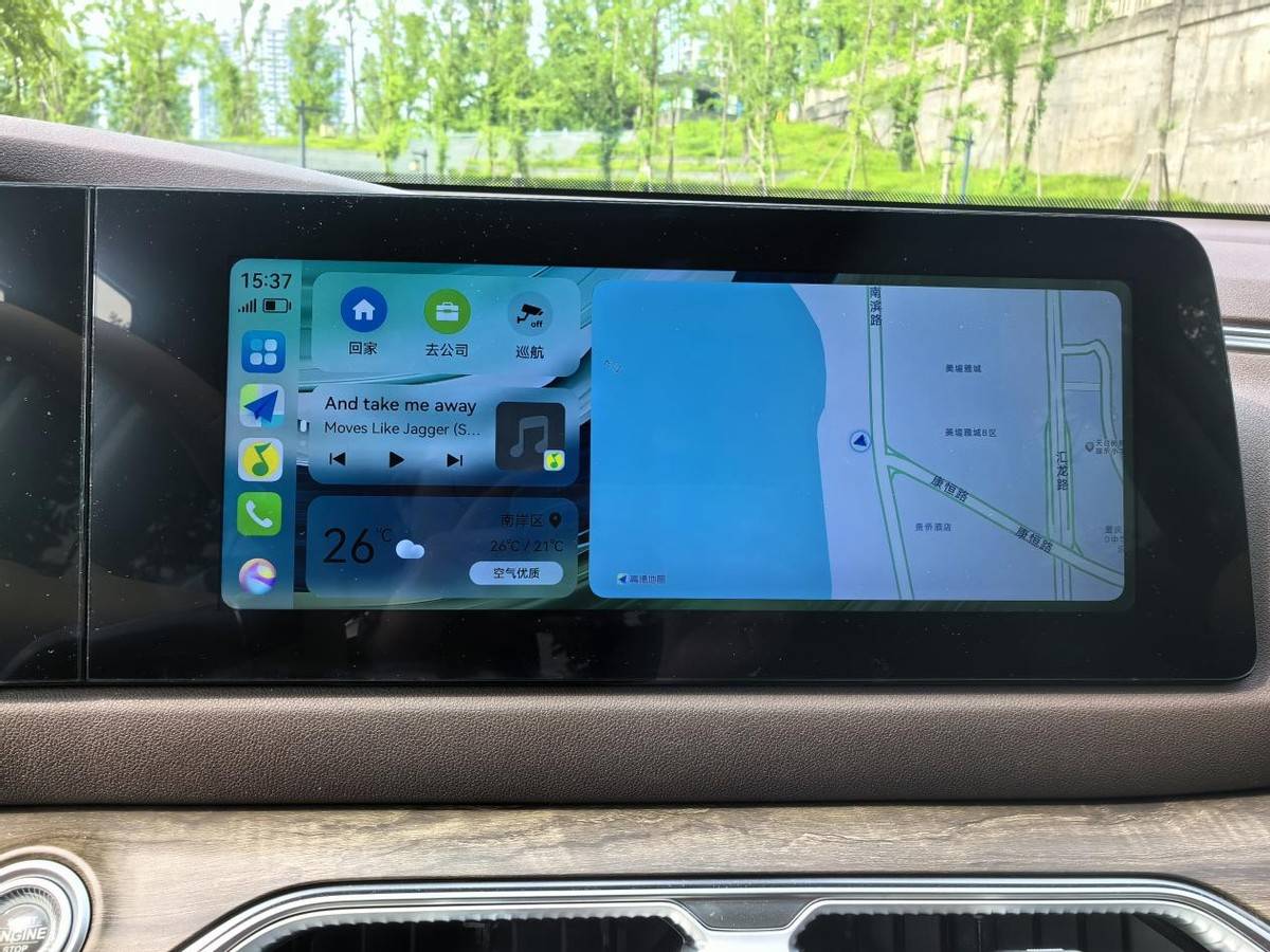再看內(nèi)飾,首先要承認(rèn),途岳內(nèi)飾確實(shí)比很多同價(jià)位合資車型做得好,精致且具備一定的科技感,軟材料也沒少用,整體質(zhì)感還算不錯(cuò),但在藍(lán)電E5榮耀版面前還是甘拜下風(fēng)。比如途岳入門車型是塑料方向盤+織物座椅,藍(lán)電E5榮耀版則全系標(biāo)配皮質(zhì)方向盤/座椅,雙大屏也沒有缺席,內(nèi)置高德地圖+HUAWEI HiCar,總之不管觸控體驗(yàn),還是內(nèi)置APP的豐富程度,都在途岳車機(jī)之上。