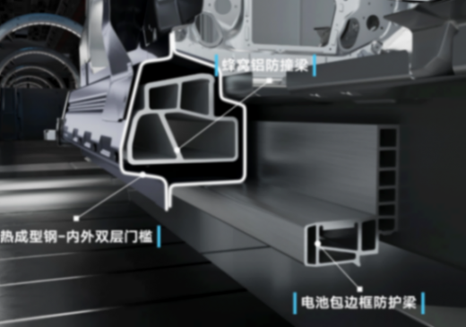 其次是側(cè)面碰撞試驗(yàn),ID.7 VIZZION的用料可謂是周到扎實(shí)且有的放矢。車(chē)輛采用2000MPa超高強(qiáng)度熱成型鋼地板橫梁,A/B柱、門(mén)檻防撞梁等連接位置采用熱成型鋼,用以抵御兩側(cè)的撞擊和擠壓,門(mén)檻位置以雙層熱成型鋼與蜂窩鋁加強(qiáng)梁的“三明治”結(jié)構(gòu)加固,可以承載相當(dāng)于110噸左右的沖擊力。此外車(chē)頂和座椅/頭枕等部位都做了相應(yīng)的措施,尤其是頭枕部分反復(fù)試驗(yàn)驗(yàn)證,使其貼合人體脊椎弧度,減少在追尾事故中的頸部傷害。