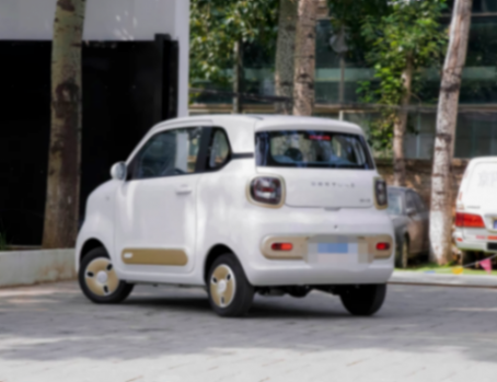 外觀方面,奔騰小馬采用雙色的外觀顏色設計,兩個Q萌的前大燈組十分惹人愛。前大燈為鹵素光源,前轉向燈為LED光源。前部LOGO下方是充電接口,僅配備慢充接口。
