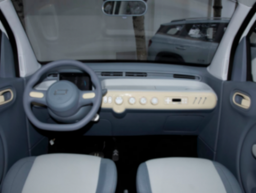 內飾方面,整體呼應外觀的配色,中控臺面較低,帶來較好的視野。新車擁有7寸已經儀表盤,頂配車型將有倒車影像。座椅采用織布材質。配置上,新車配備藍牙、收音機、手動空調、12V電源和遠程控制。App遠程控制包含手機遠程解鎖、遠程閉鎖,一鍵尋車以及閃燈鳴笛。安全配置包括后倒車雷達、主安全氣囊、胎壓報警、上坡輔助、ABS+EBD等。
