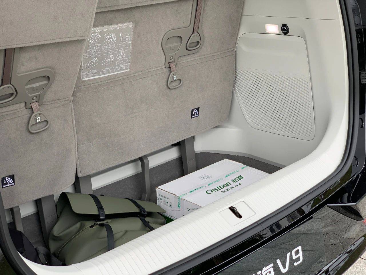 當你把三排座椅全部放倒后,后備箱還能進一步拓展到1416L,后備箱約等于拓展成了一個小型的帳篷,在里面休息不成問題,當你連第二排都放下,星海V9甚至可以做到成為頭排之后皆平坦,后備箱容積可以拓展到驚人的2792L,當房車幾乎都可以了。