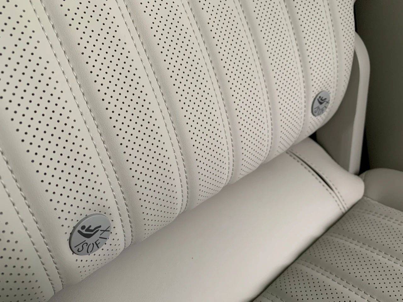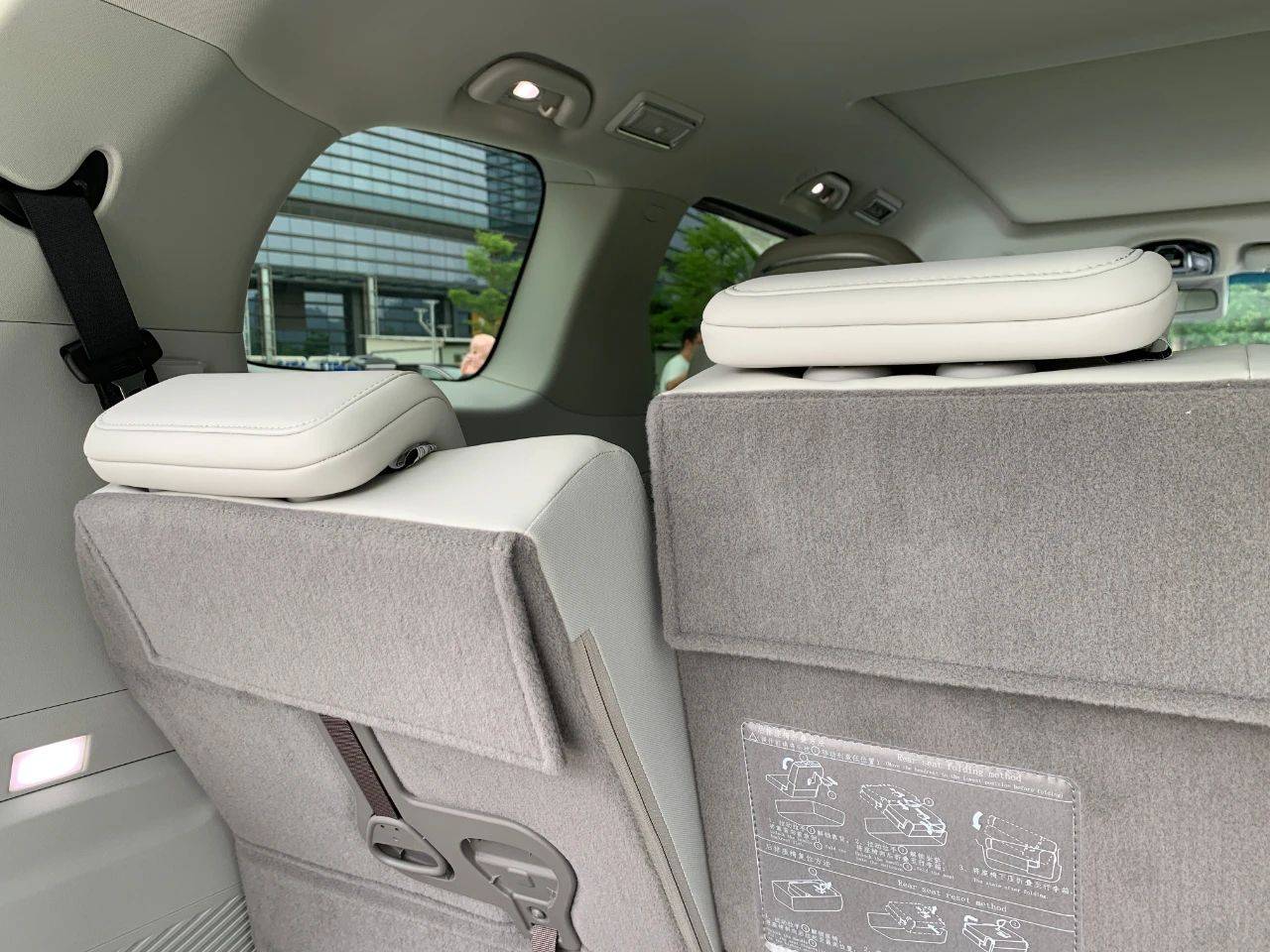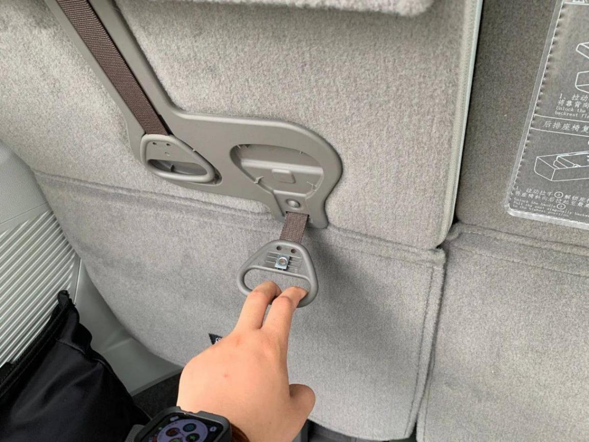 最后是第三排,左右照例有放水杯的位置,上方也有空調出口,空間以我165的身高腿部前面的距離不多,但是也支持翹二郎腿。個人比較喜歡的是,就連第三排,東風風行都安排上了兒童安全座椅的插口: