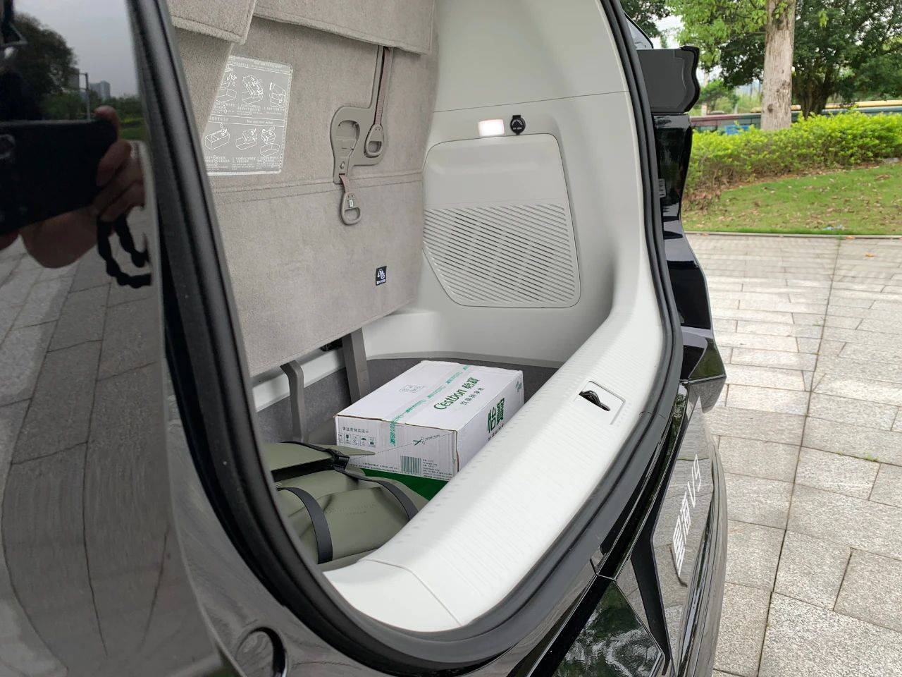 滿載7人常規狀態下達593L,僅下沉的地方就酷似一個大浴缸,深度大約是1.5箱礦泉水的高度。以行李箱作為參照物的話,可以放得下大約7個20寸的行李箱外加6-7個的背包。