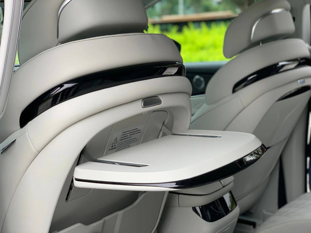而第二排座椅星海V9高配除了帶10向電動調節、腿托、加熱、通風和按摩、零重力座椅功能之外,更支持使用扶手智慧屏控制座椅的調節角度與空調風量。本人試駕的為中配車型,雖然沒有該項配置,但375*273mm貼心小桌板并未缺席,在長途駕駛的過程中可以在小桌板上盡情的吃零食。