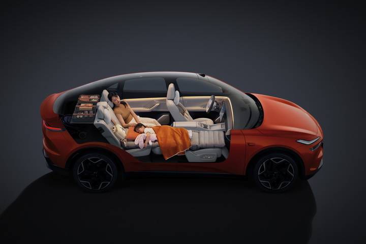 新車內飾暫未公布,但發布會上官圖表示,新車將提供17.2英寸的3K高清中控大屏、13英寸的HUD抬頭顯示以及后排的8英寸影音娛樂屏。座椅方面,副駕座椅擁有腿托,前排2個座椅支付放倒形成“大床模式”。