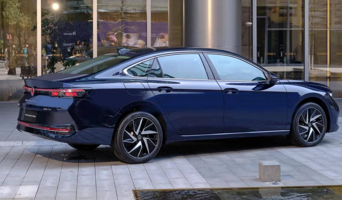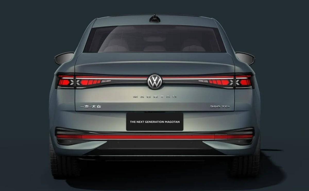 側面看起來運動感不錯,而車尾則是采用了貫穿式的LED尾燈,同時大眾LOGO也可以進行點亮,再配合邁騰的英文字母標識,整體也還算是科技感中又透露出幾分時尚氣息。