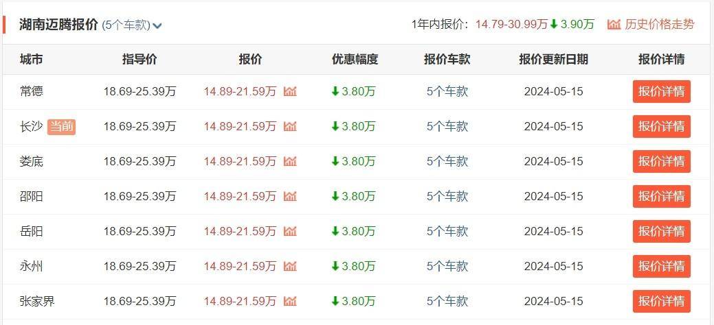 更何況,指導價18.69-25.39萬元的老款大眾邁騰車系,眼下也已經在4S店終端擁有了4萬元現金優惠,做貸款可以享受6萬元現金優惠、同時店內還免費贈送7次基礎保養的這么一個優惠幅度。