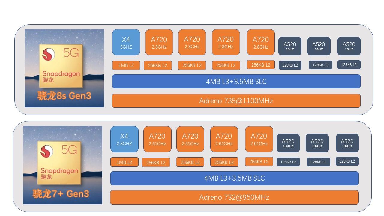 近段時(shí)間,市場(chǎng)迎來一波驍龍7+ Gen3和驍龍8s Gen3新機(jī)潮,廠家在市場(chǎng)宣傳中也是火藥味十足,使用驍龍7+ Gen3的廠家說驍龍8s Gen3就是超了點(diǎn)頻,使用驍龍8s Gen3的廠家則強(qiáng)調(diào)高通對(duì)8s Gen3的定位更高,具有更好的周邊特性支持等內(nèi)容。
