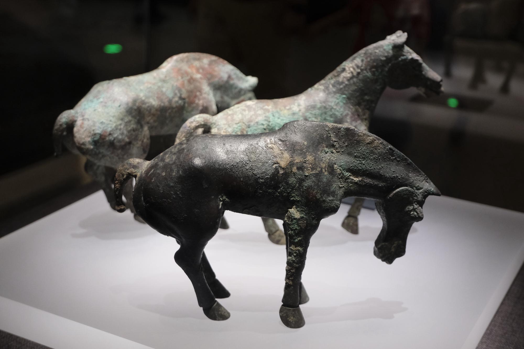 館內有“甘丹風華——邯鄲歷史文化陳列”“邯鄲古代石刻藝術陳列”“方圓世界——中國歷代錢幣陳列”“磁州窯瓷器陳列”四個常設陳列,其中基礎陳列與石刻陳列尤為光彩奪目。館藏珍品有戰國的青銅馬、蟠螭紋馬首耳大銅鑒、透雕夔龍紋金牌飾、鎏金龍虎嵌玉龍劍首,漢代的金銀涂乘輿大爵酒樽、刻度天祿架熨斗,以及從北朝至宋代的石刻造像等,每一件展品都折疊收藏起一段時光,而我們立于歷史長河的盡頭,咀嚼展簽上的說明,念出今人給古物起的冗長名字,那種感覺如同念出不解其意的佛咒,又仿佛從昆蟲琥珀中小心提取上古生物的基因密碼。
