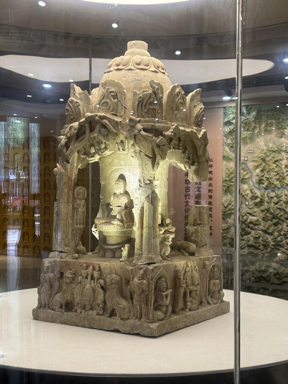北吳莊一坑出土文物2985件,是新中國成立以來出土數量最多的佛教造像埋藏坑。出土造像跨越北朝和隋唐,且紀年明確,時代銜接,完整展現了“秀骨清像”“曹衣出水”“褒衣博帶”等不同時代的藝術風格,并出現了具有地域特色的“龍樹背屏”造像樣式。鎮館之寶北齊白石四面造像覆缽塔,在入口廳獨享環形展柜,接受觀眾360度的觀瞻、膜拜與驚嘆,邯鄲市博物館也專門為它做了放大版的復制品,以展現其巧奪天工的雕鑿技藝。
