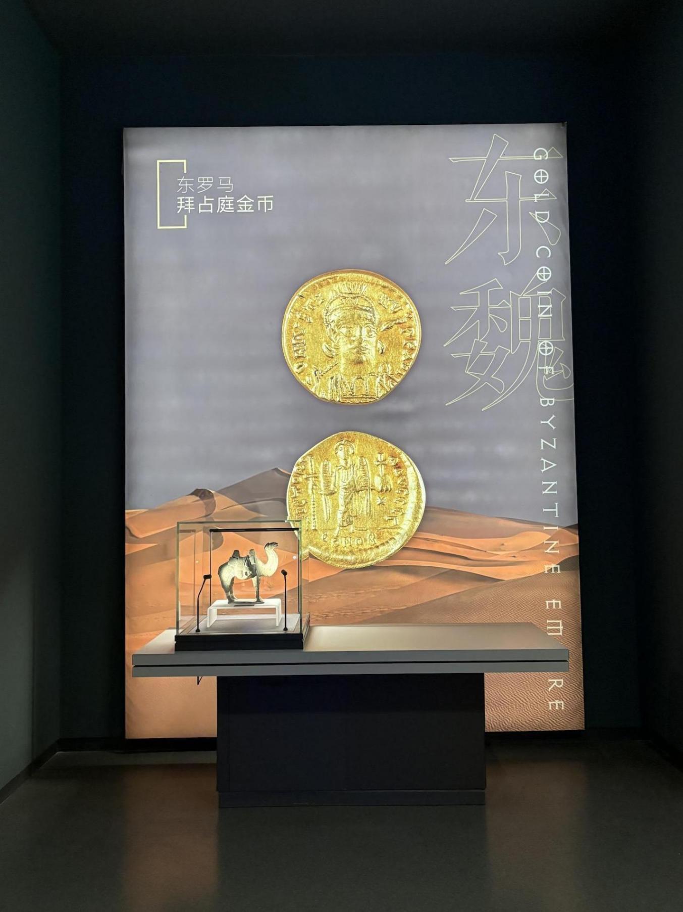 北朝考古博物館藏拜占庭金幣展板和駱駝陶俑