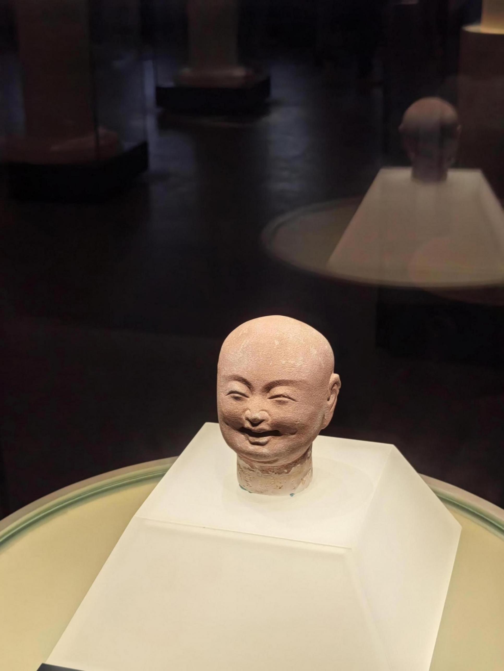 邯鄲市博物館有一件令人印象深刻的石刻展品,即常樂寺遺址出土的唐代紅砂石笑面羅漢頭像,被人們親切地稱為“邯鄲微笑”。有別于佛相莊嚴、菩薩垂眉、金剛怒目,小羅漢笑得兩眼彎彎,面頰上帶著深深的酒窩,一副天真爛漫、無憂無慮的模樣。與響堂山石窟一樣,他歷盡劫波,身軀不全,但苦難卻無法遮蔽來自靈魂深處的平安喜樂,帶著穿透人心的感染力跨越千年。他便是大唐,大唐便是他,站立在黑暗時代的盡頭,矗立于沃野之上。