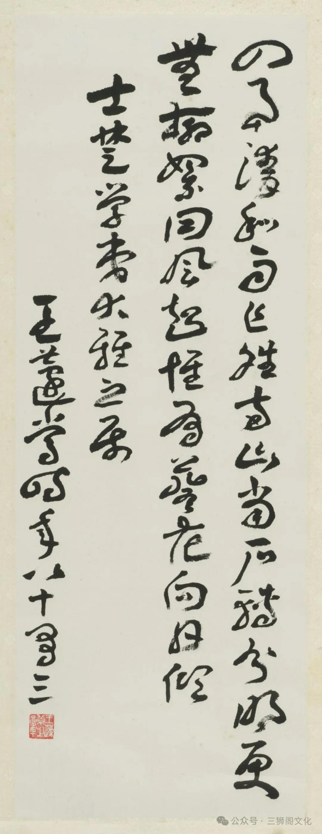 尤在筆法上創(chuàng)造性地步入一個(gè)全新的境界。首先是用筆遲澀,有金石味。王先生筆力沉雄,毫無虛筆,一洗沈寐叟尖刻之習(xí),古今無有匹敵。尤其先生后期之作,老辣生澀,直若刀鑿錐刻,非是軟筆所為。其次是用筆以中鋒為主,適當(dāng)輔以側(cè)鋒。中鋒使筆畫沉著干凈,即便是許多澀筆也顯得筆跡清晰,毫不含混,避免了章草容易飄浮的缺陷;側(cè)鋒的使用又使其不失章草特征,增加了點(diǎn)畫的豐富程度。這些同樣也不是說王先生有多大的玄想,可以憑空創(chuàng)造出這種模樣,而是來自他非凡的北碑功底。