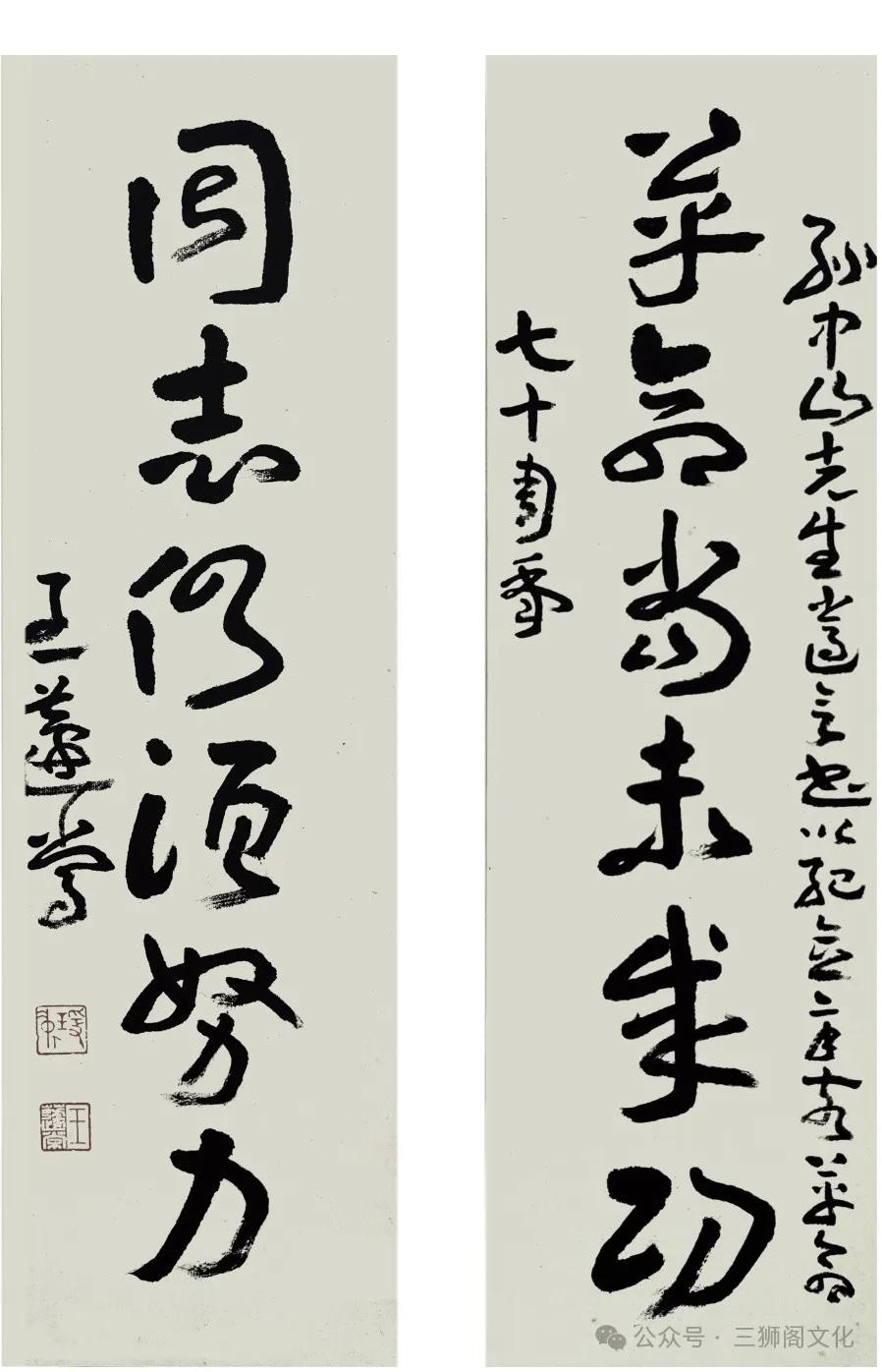 王蘧常,《革命同志對聯(lián)》 紙本,對聯(lián) 125.0cm×28.0cm×2