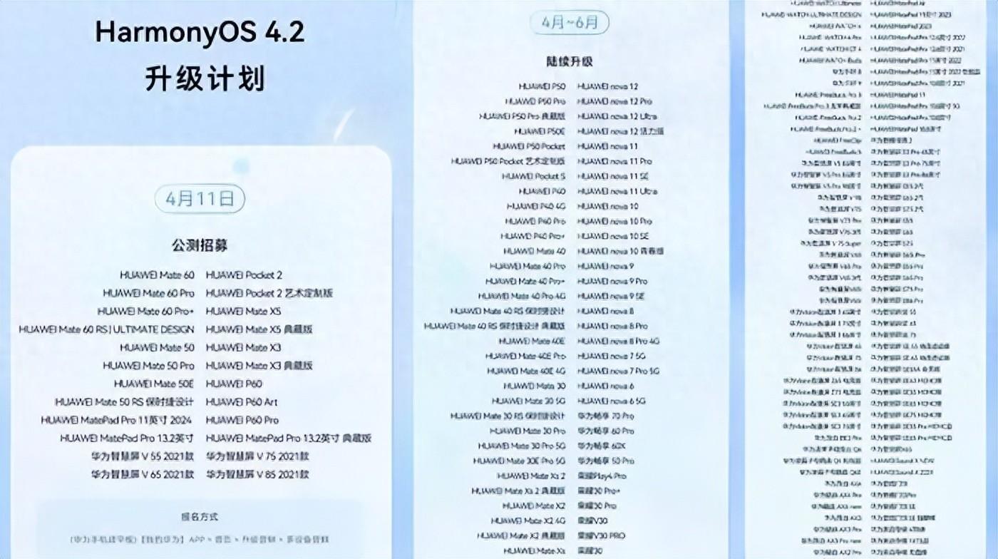 就在不久之前,華為的鴻蒙OS 4.2版本開始了全面的公測。上個(gè)月,華為一口氣宣布了11款機(jī)型的升級,包括大名鼎鼎的華為 Mate 60 系列、Pocket 2、Mate X5、MatePad Pro系列等。