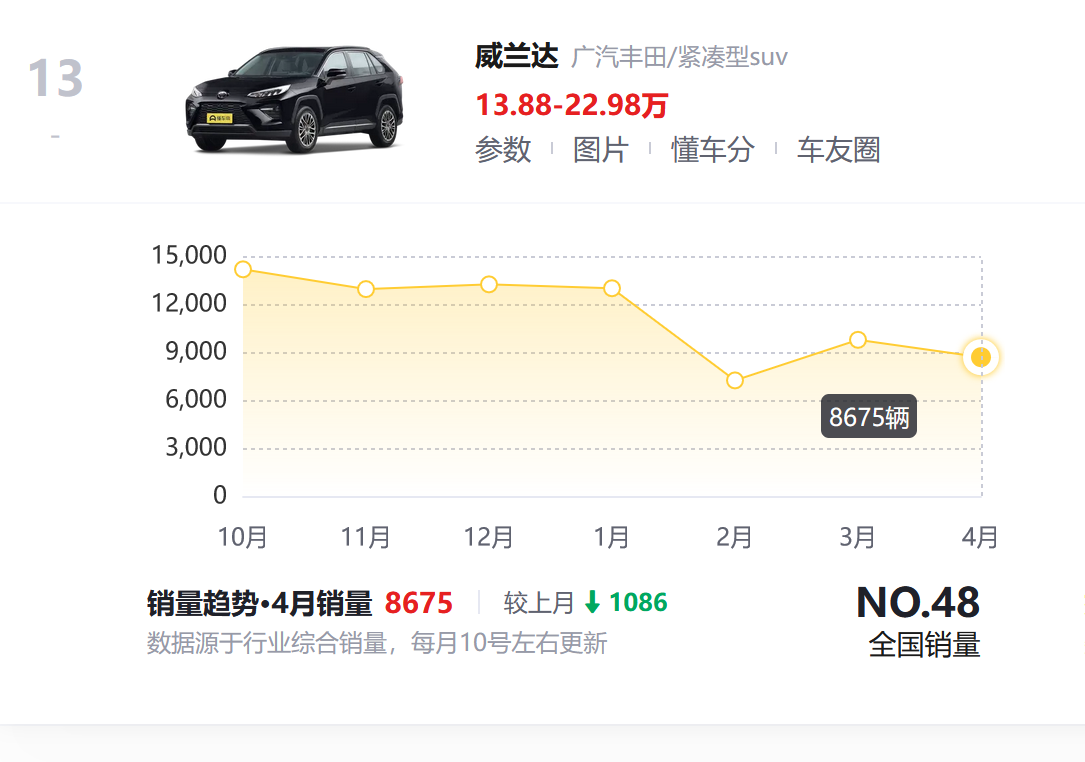 大降價(jià)確實(shí)有效!豐田威蘭達(dá)下降幅度達(dá)5.2萬,30天賣出8675輛