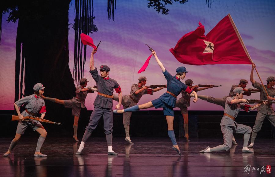 劇中角色瓊花“倒踢紫金冠”的造型,女戰(zhàn)士操練場(chǎng)上的颯爽舞姿,紅軍排隊(duì)沖鋒陷陣,舞臺(tái)上快速前進(jìn)的隊(duì)伍仿佛無(wú)窮無(wú)盡……這些載入中國(guó)芭蕾史冊(cè)的經(jīng)典場(chǎng)面如今看來(lái)依然震撼人心;而“萬(wàn)泉河水”,“娘子軍練歌”等經(jīng)典的旋律,也成為印刻在幾代中國(guó)人心中永不磨滅的記憶。