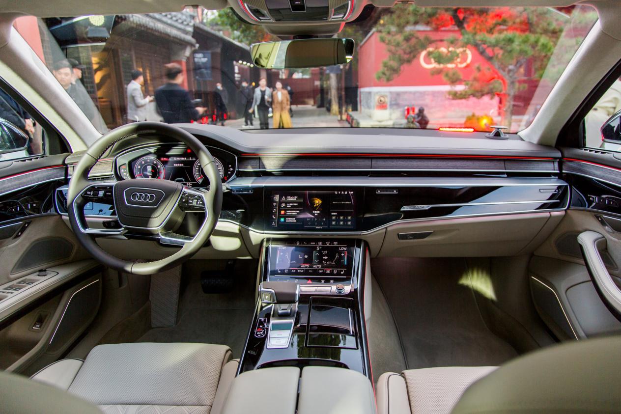 內飾方面,2024款奧迪A8L延續了現款車型的整體布局,配備了10.1英寸和8.6英寸兩塊MMI觸控顯示屏以及液晶儀表盤,可選裝的抬頭顯示功能進一步增強了車輛的科技感。國內市場的A8L搭載了基于MIB3+Asterix全新奧迪互聯平臺的Audi connect互聯系統,這一系統無疑讓車輛在智能互聯方面走在了行業的前列。