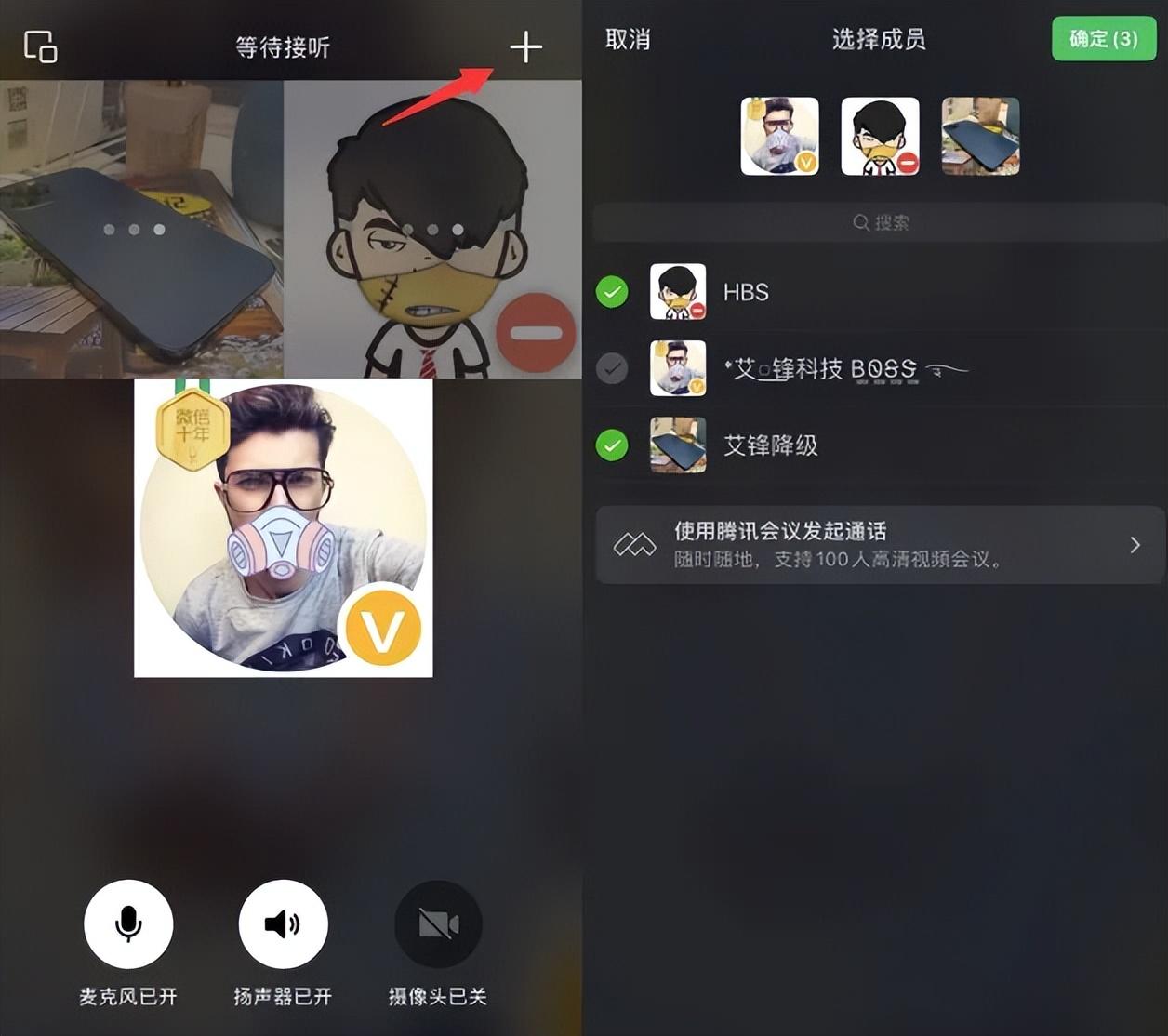 與微信群多人連接操作一樣,點擊右上角加號,你可以邀請好友,而不是群成員,區別就是,現在個人也能邀請多人連線,下圖是群多人連接,操作與這個類似。