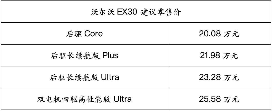 售價20.08萬起,沃爾沃北歐高智感純電SUV EX30正式上市
