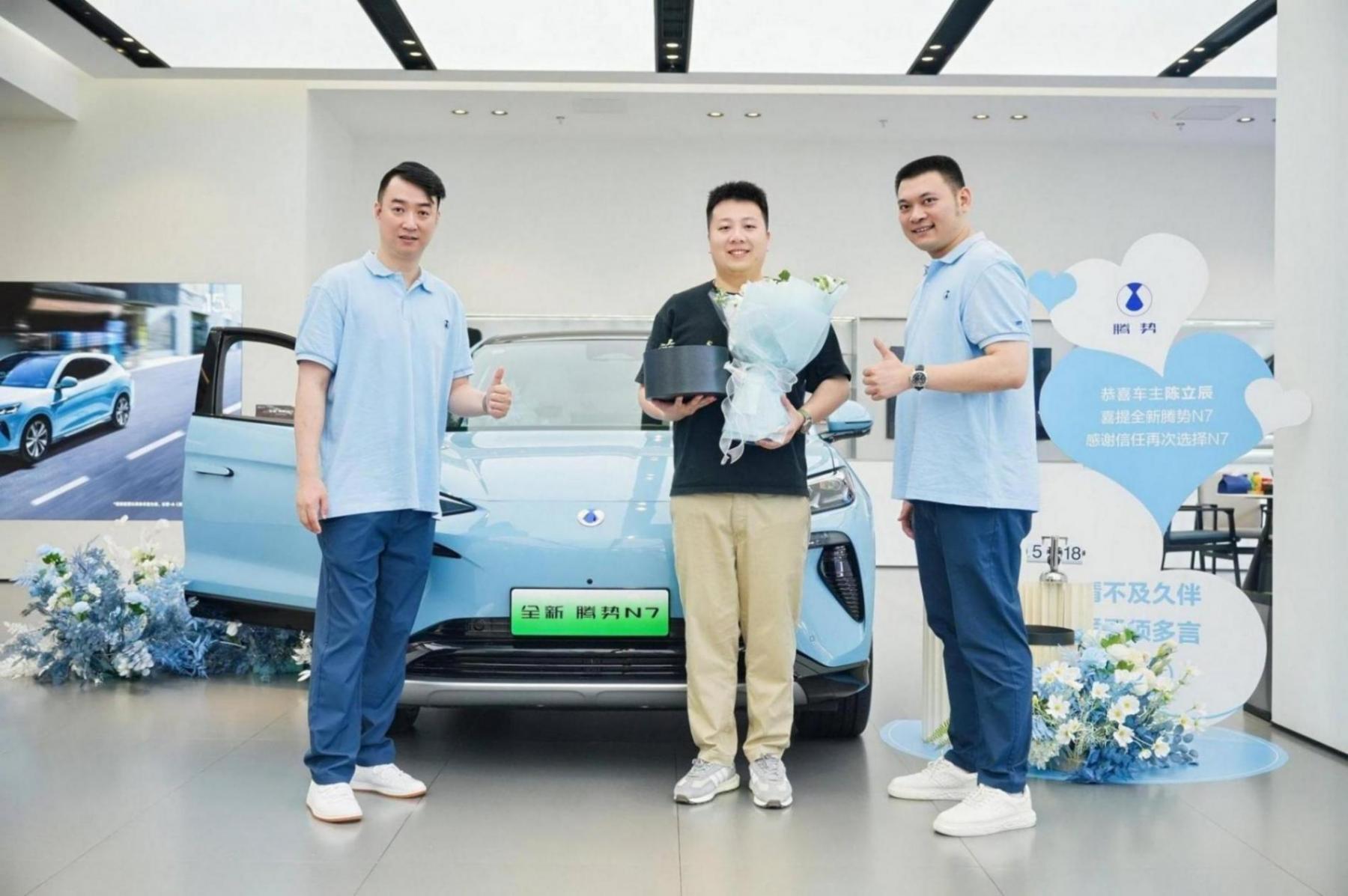 在福州金山中能騰勢體驗店盛大開業的同時,迎來了福州騰勢老客戶置換新款車型的交付時刻。