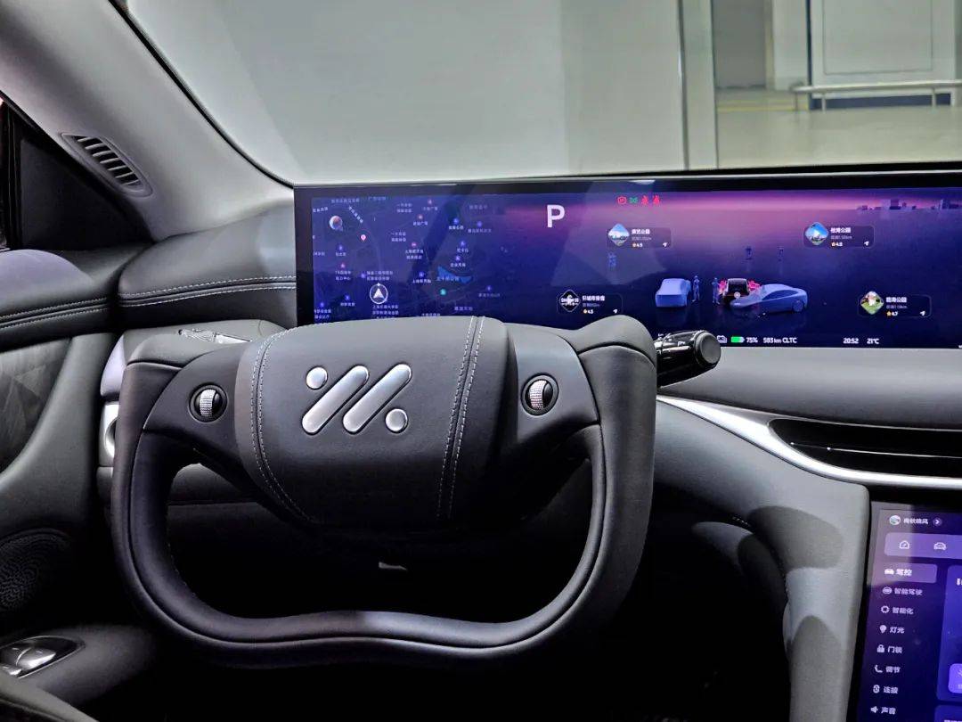 但是這次智己優(yōu)化了L6的轉(zhuǎn)向比,單邊打滿的圈數(shù)在1.2圈左右,比起LS6減少了很多,這就讓它這個(gè)半幅式方向盤稍微合理了一些,但我也還是認(rèn)為存在繼續(xù)優(yōu)化的空間。