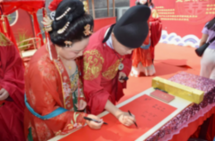 5月20日,西城區椿樹街道在安徽會館舉辦“琉璃廠西街復興計劃啟動儀式暨唐韻集體婚禮”。來自琉璃廠歷史文化街區的榮寶齋、一得閣、戴月軒、宏寶堂等新、老字號文化企業參加,共同推出“西城區結婚新四件套”,利用甜蜜經濟助力文化企業持續發展。
